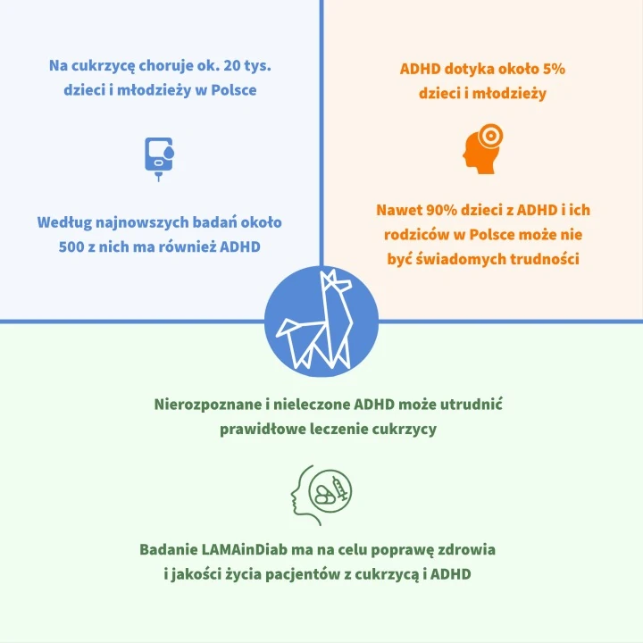 Cukrzyca typu 1 (T1D) to bardzo poważna choroba, która w tym momencie dotyka około dwudziestu tysięcy dzieci w Polsce. Według najnowszych badań, aż u 500 z nich może równocześnie występować zespół nadpobudliwości psychoruchowej z deficytem uwagi (ADHD). Niestety, ponad u ponad 90% pacjentów cierpiących na ADHD zaburzenie to nie jest rozpoznawane ani skutecznie leczone. Co gorsza, brakuje jednoznacznych badań oceniających efektywność i bezpieczeństwo leków używanych do leczenia ADHD przy jednoczesnym chorowaniu na T1D.